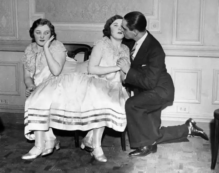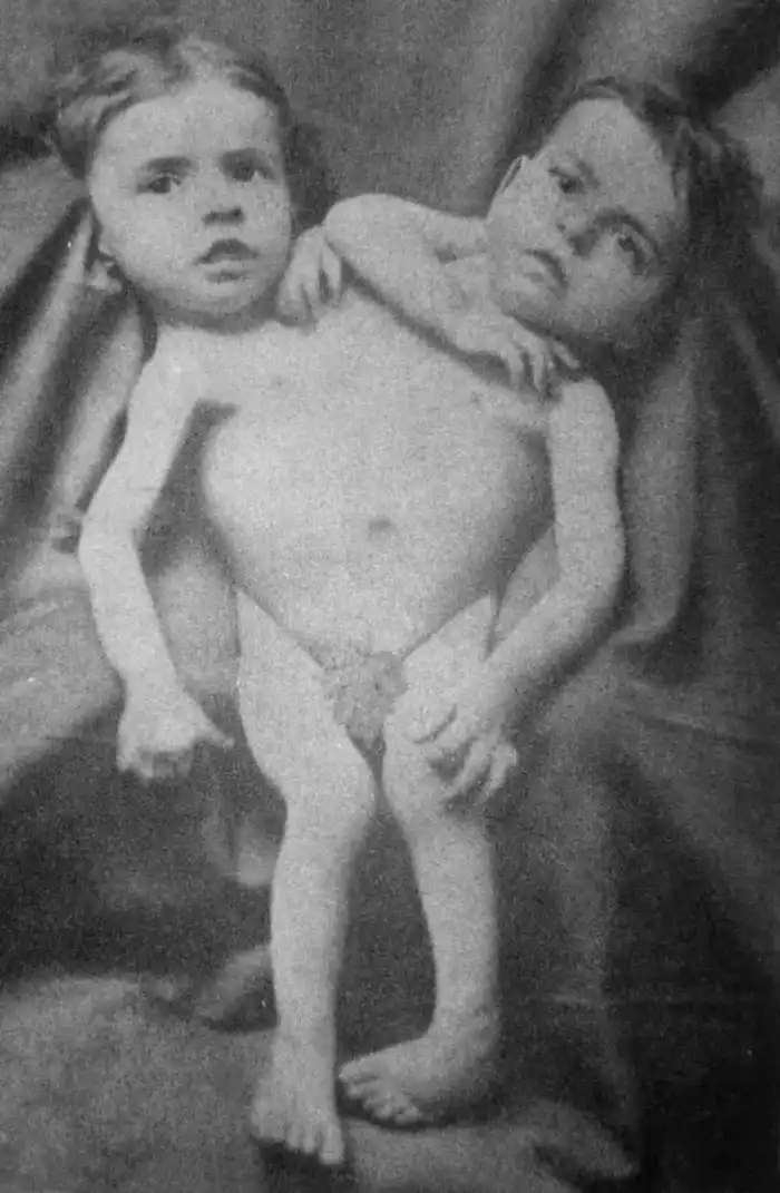 Вайолет и Дейзи Хилтон были от рождения сращены в районе бедер и ягодиц. Врачи боялись делать операцию и разделять девочек, поскольку, как выяснилось, круги кровообращения у них были общими. Родители заставляли девочек выступать на сцене, чтобы зарабатывать деньги. В конце концов, владелец театра по фамилии Хилтон просто выкупил их у матери, дав им заодно новую фамилию. Они жили фактически в неволе, их заставляли выступать и били за непослушание. Зато став взрослыми, они отсудили $100 тысяч у своего тюремщика. 21 штат отказал им в праве вступать в брак, и лишь в 1936-м они добились этого разрешения. Они умерли в 1969 году в 60-летнем возрасте с разницей в два дня.
