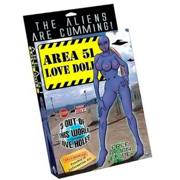 Для любителей нестандартного секса поступила в продажу надувная кукла-инопланетянка. Отсутствие волос на голове в полной мере компенсируется наличием третей груди и синим цветом кожи. Кукла упакована в картонную коробку, на которой надпись, предупреждающая о том, что секс с инопланетянкой может уничтожить в вас интерес к земным женщинам.