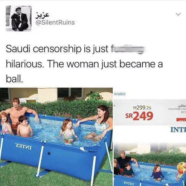 В Саудовской Аравии изображения женщин подвергаются строгой цензуре. Женщина может появиться на телевидении и в рекламе, если она одета в одежду, которая полностью закрывает руки, ноги, плечи и зону декольте.