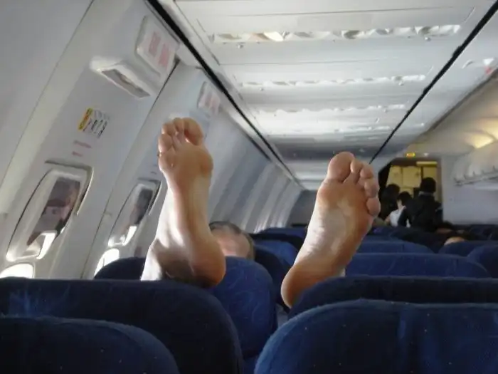 Толпа людей в замкнутом пространстве, спертый воздух, множество пыльных поверхностей и не всегда аккуратные пассажиры - самолет не зря считают рассадником инфекций. Так что протирайте потщательнее столик перед обедом - многие пассажиры меняют на нем памперсы детям. И ни в коем случае не снимайте обувь в салоне - есть немалая вероятность, что на пол в предыдущем рейсе кого-то стошнило.