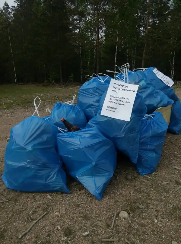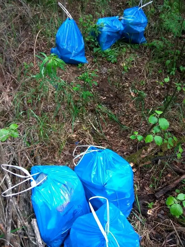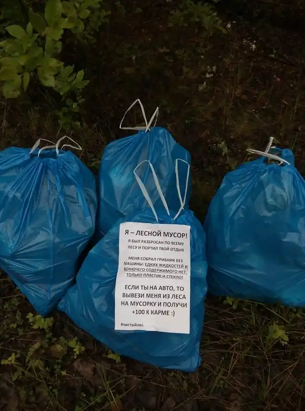 Вот таким вот добрым делом занимается один сознательный гражданин, желающий очистить от мусора леса родного края. Активист отправляется на места стихийных микро-свалок и собирает оставленный мусор в пакеты, прикрепляя к ним записки, адресованные автомобилистам. Так как у самого автора снимков машины нет, то он просит вывезти мусор тех, у кого она есть, и, как правило, мусор исчезает с оставленного места в течение 2 - 3 дней. Желающих помочь природе оказалось немало и совместными усилиями лес действительно становится немного чище.