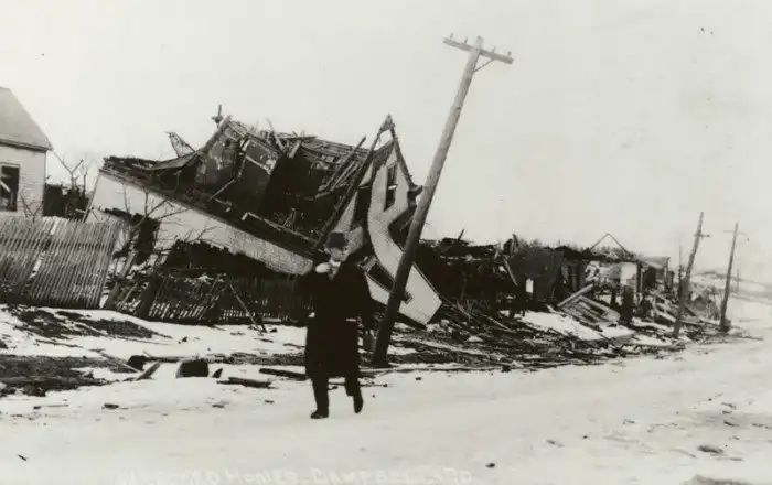 6 декабря 1917 года в гавани канадского города Галифакса в результате столкновения груженого взрывчаткой французского военного корабля "Монблан" с норвежским судном "Имо" прогремел страшный взрыв. Его мощность, по современным оценкам, составила около 3 килотонн в тротиловом эквиваленте. Приблизительно 2000 человек погибли под обломками зданий и в пожарах, 9000 человек получили ранения, 400 человек лишились зрения.