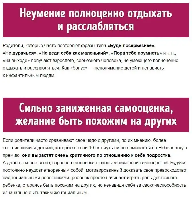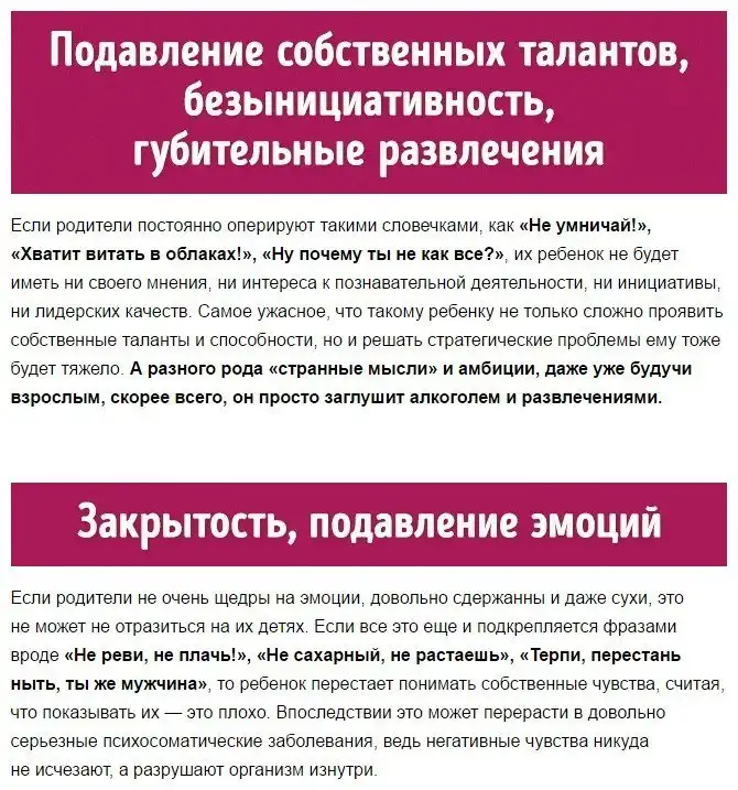 Воспитание детей является непростым процессом, в ходе которого родители должны учитывать различные моменты и аспекты. Чтобы ребенок стал полноценной сформировавшейся личностью необходимо приложить немало усилий и стараний, и далее вы узнаете, каких фраз и действий необходимо избегать, чтобы у ребенка не было никаких психологических проблем и комплексов.