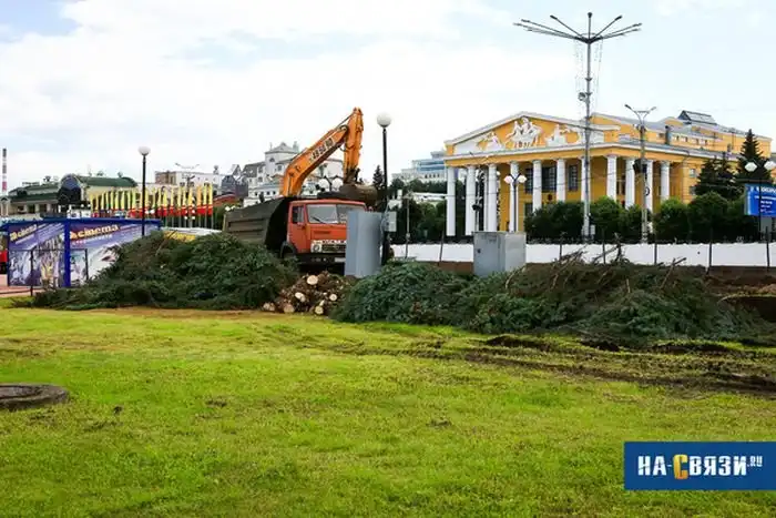 Администрация Чебоксар посчитала ненужными газон и ели, растущие на набережной и передала эту территорию в 20-летнюю аренду предпринимателям. Сумма ежегодного платежа составит 4 730 000 рублей, и, судя по всему, арендатор в праве делать здесь практически все, что угодно. В рамках подготовительных работ для строительства бетонной площадки, на которой возведут 55-метровое колесо обозрения и ресторан быстрого питания, было вырублено 12 голубых елей и уничтожен газон.