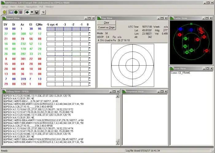 Загружаем программу SIRF Demo, и выставляем скорость 9600. В комнате не определило местоположение.