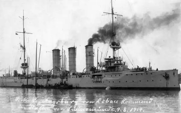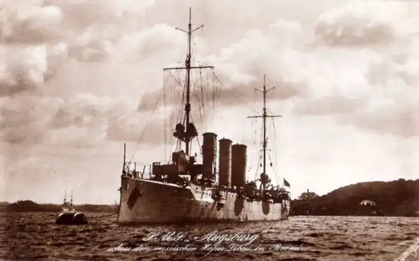 6 августа в 20 часов 30 минут у острова Кюно (Кихну) русские канонерки встретились с германским крейсером “Аугсбург” и эсминцами “V-29” и “V-100”. Рассчитывая оторваться от противника в наступавших сумерках и вечернем тумане, лодки увеличили ход. Но быстроходные корабли противника их догнали, осветили прожекторами и через 15 минут с дистанции 25 каб. открыли стрельбу.