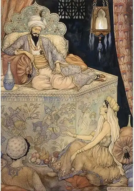 Шахрияр вернулся с охоты, застав своего брата с улыбкой на лице. Долго допытываться не пришлось, тот сразу рассказал все начистоту. Реакция была необычной. Вместо того чтобы поступить как младший брат, старший предложил отправиться в путешествие и посмотреть: а изменяют ли другим мужьям жены?