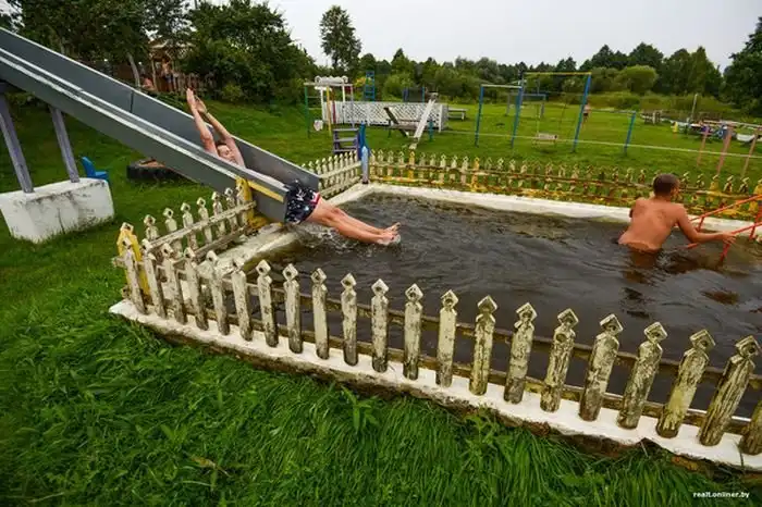 В Белоруссии пенсионера Вячеслава Козела, построившего "сельский аквапарк" на берегу реки Неман, обвиняют в захвате земли и заставляют снести конструкции. Площадка стала популярным местом для отдыха детей и взрослых, а построил ее мужчина на свои собственные деньги. Еще 7 лет назад на месте площадки, расположенной через дорогу от дома пенсионера, были высокие заросли, однако теперь здесь бассейн и горка, волейбольная площадка, футбольное поле, качели, карусели, турники, помосты для прыжков в реку, участок для игры в городки и танцевальная площадка. Денег с посетителей своей площадки мужчина не брал и содержал ее за своей счет. Однако все это чиновники признали небезопасным, так как у пенсионера не было никаких сертификатов. К тому же его обвинили в самовольном захвате земли и заставили заплатить штраф, который позже, однако, был отменен вышестоящей инстанцией. Противостояние мужчины с властями продолжается, они заставляют его либо все сертифицировать, либо снести, а местные жители пока собирают подписи в поддержку односельчанина, построившего популярное место отдыха.