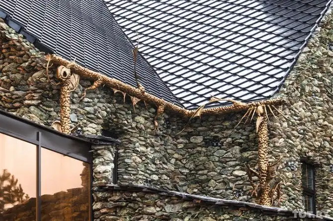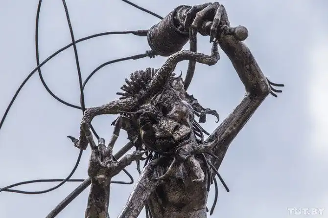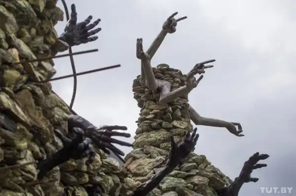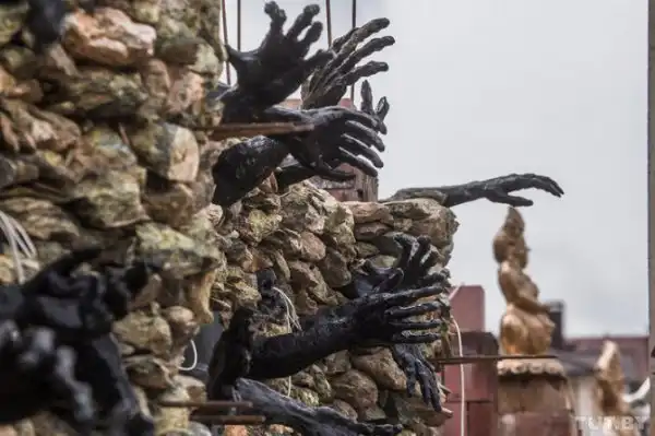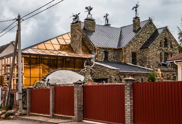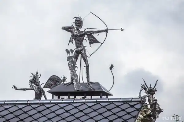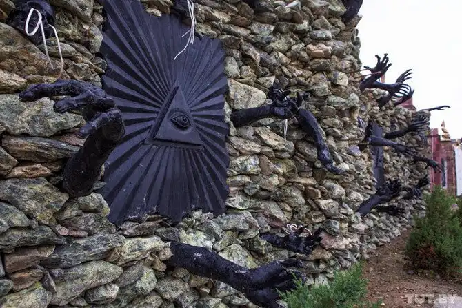 Бизнесмен построил под Минском дом, возле которого боятся жить соседи. В деревне Ратомка обычный загородный дом украсили разнообразными фигурками всякой нечисти. Забор дома украшают оторванные руки, на крыше установлены черти, держащие в руках фонари, которые загораются по вечерам, и луки со стрелами. Купол беседки на территории усадьбы украшен черепами. :diablo: