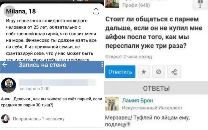 Девушки уже шутят над подобными постами, потому что желание просто так получить финансовую поддержку - очень актуальное предложение в сети