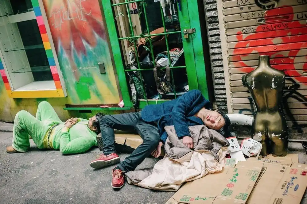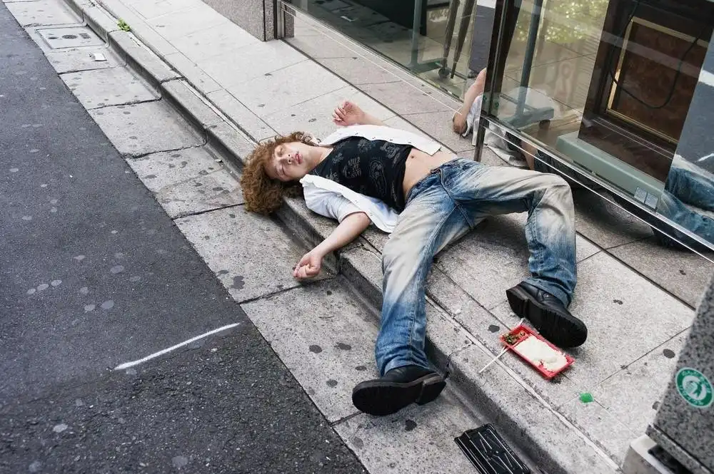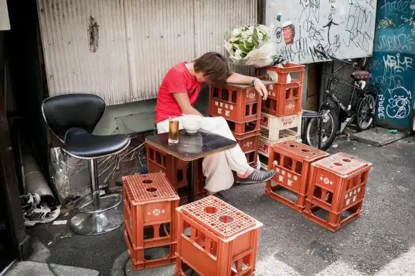Весьма неприглядную картину можно наблюдать на улицах многих японских городов: пьяные люди спят на земле прямо средь бела дня. Пиво, вино и виски — очень популярные напитки в Японии, но традиционное саке по-прежнему является любимым алкогольным напитком. По всей стране, даже на вершине горы Фудзияма, стоят автоматы по продаже алкоголя. Сами японцы спокойно относятся к таким людям, предпочитают их не трогать, пока те не проспятся.