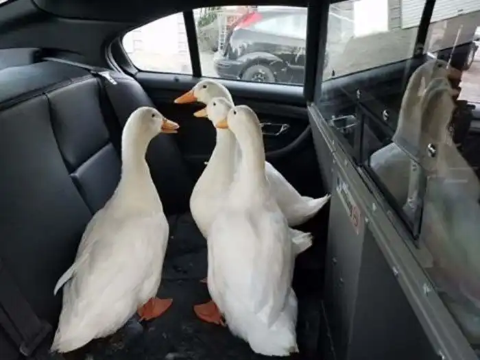 Полицейские прибыли на место незамедлительно. Хотя и удивившись при виде необычных дебоширов, они приступили к работе. Но уткам никак не хотелось попадать под арест! Аолиция пыталась загнать их в машину, но птицы упорно не желали в нее садиться. "Полицейские пытались загнать их в автомобиль, но утки удирали от них вокруг машины, и им приходилось бежать за птицами, - рассказал свидетель. - По правде говоря это было очень смешно!"