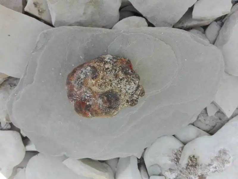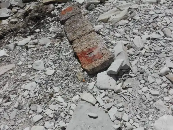 Подножие скал было усеяно острыми осколками камней, но по мере приближения к месту гибели «Красной Грузии» всё чаще попадались куски металла, напоминающие камни — результат долгой жизни в морских волнах в соседстве с галькой и выбросами мазута. Также почти на всём протяжении этого дикого берега встречаются куски железобетонных конструкций, то ли память о войне, то ли итог долгого соседства с военной частью.