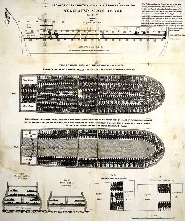 Схема размещения рабов на английском работорговом корабле "Брукис".