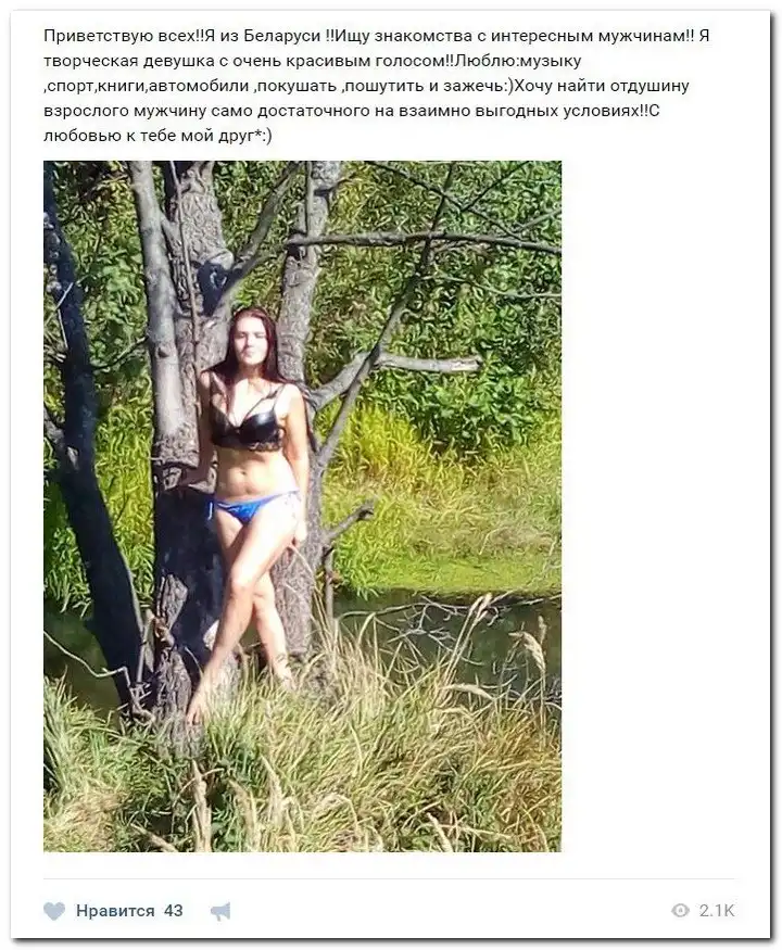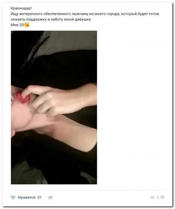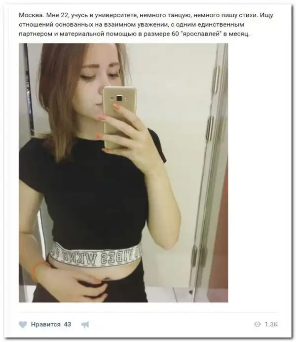 Эти наивные девушки хотят красиво жить и ничего не делать. Они надеются, что богатые спонсоры увидят их красоту, и в очередь выстроятся, предлагая свою помощь. Некоторые даже пишут, что никого интима, им должны заплатить чисто за приятное общение.