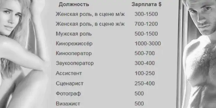 Это средние расценки, которые могут быть ниже для начинающих или выше для звезд. Актеры гей-порно и те, кто практикует самые экстремальные - непригодные для описания в приличном разговоре сцены - могут получать от 1 800 до 2 500 долларов за день. Оплата актеров фильмов для взрослых фиксирована, рассчитывается, исходя из суммы за 1 день. Лицензионные отчисления за покупку или просмотр фильмов по ТВ эти актеры не получают.