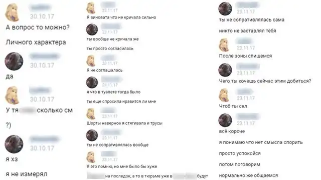 Сам школьник выложил в Сеть скрины из переписки со своей знакомой в соцсетях, где они обсуждают предстоящий секс. Судя по сообщениям, девочка не стесняется и задет весьма интимные вопросы. Также она просит парня применить к ней силу, если она будет кричать и сопротивляться. Он отвечает ей, что тогда это будет изнасилование. На что сама школьница уверяет: все по взаимному согласию.
