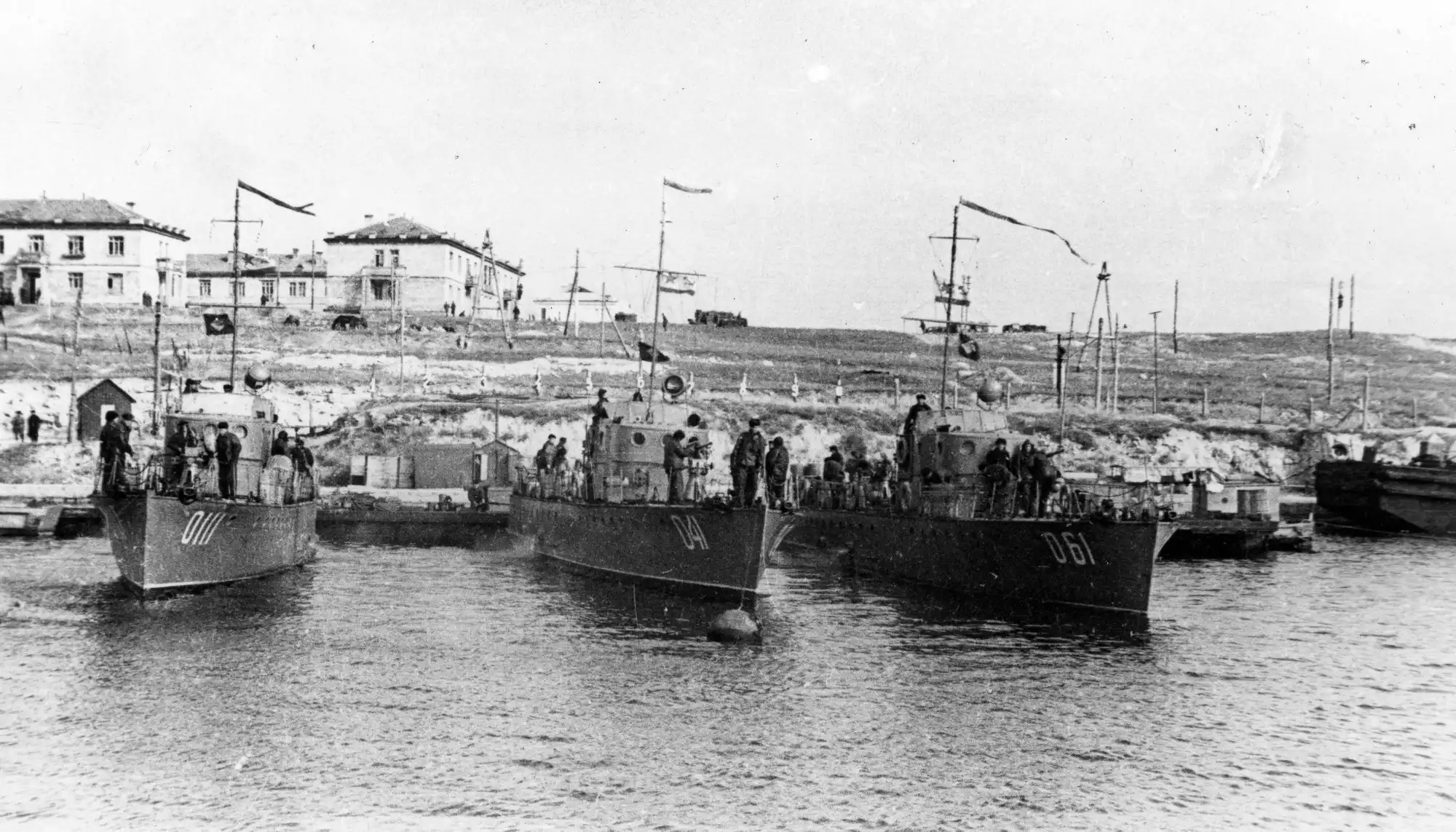 Командиром был у нас молодой старший лейтенант, 26 лет. Между собой мы его любовно называли «Володя» и относились к нему очень тепло. Он был человеком строгим, справедливым и серьёзным. Требовал безукоризненного исполнения Устава корабельной службы. Помню, попал я на гауптвахту под Новый 1945 год из-за того, что по молодости затеял борьбу со своим другом на палубе – вахтенным по катеру. Вот командир и выдал нам по пять суток ареста. Он очень хорошо содержал наш катер, который всегда находился в постоянной готовности к плаванию. У нас не было прямых видимых контактов с противником. Не погибло ни одного корабля из тех, кого мы сопровождали.