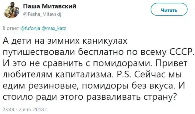 Не так давно российский политический и общественный деятель Максим Кац рассказал о том, что свежие помидоры зимой в СССР были дефицитом, который невозможно было достать. Тут же нашлось немало тех, кто встал на защиту советского прошлого и выдвинул свои аргументы. На данную ситуацию обратил внимание и блогер Илья Варламов, решивший противопоставить некоторым твитам реальные фотографии, выставляющие Советский Союз в невыгодном свете.