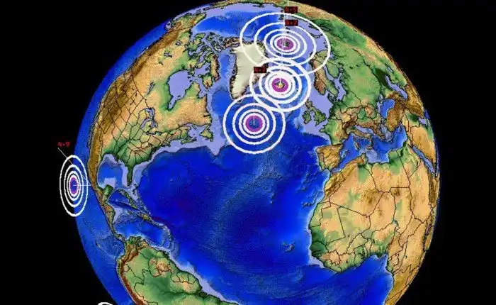 Быстрая дестабилизация ледового покрова в Гренландии и Антарктиде сыграла здесь значительную роль. Компьютерная модель показала, что повышение уровня воды в Индийском океане и Каспийском море привело к движению Северного полюса в неестественном направлении.