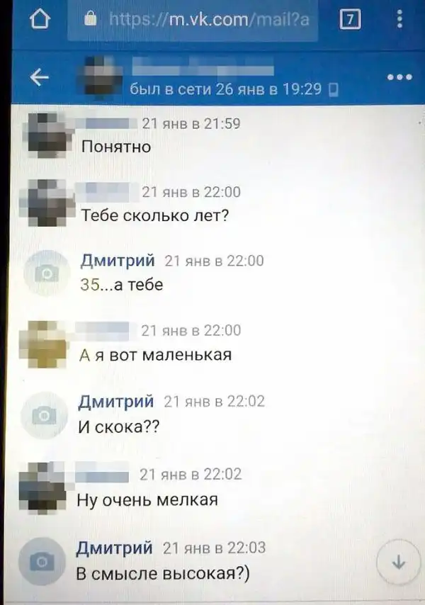 Москвичка Светлана растит 13-летнюю дочь Марину (имена потерпевшей и ее матери изменены). Женщина стала замечать, что в последнее время дочь замкнулась и стала мало с ней общаться, постоянно пытаясь сбежать «к подружкам». Чаще всего — в вечернее время. Так как после 21 вечера подростку строго запрещено куда-либо ходить, девочка однажды даже сбежала, не на шутку перепугав мать. Когда Марина вернулась и уснула, мама проверила ее телефон — и пришла в ужас.