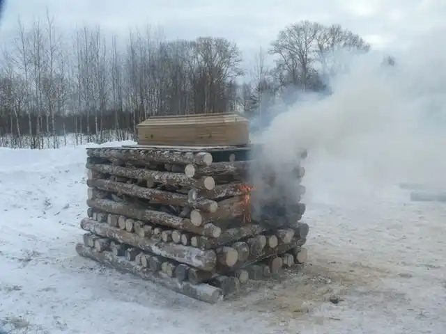 В Кировской области местные язычники организовали ритуальное сожжение своего земляка. Снимки происходящего попали в интернет. На специально собранном костре водружен гроб, который горел в течение нескольких часов.