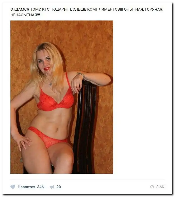 Очередная партия веселых дам из групп "Знакомства со зрелыми" и т.п., которые ищут в интернете приключения на свою задницу (и не только).