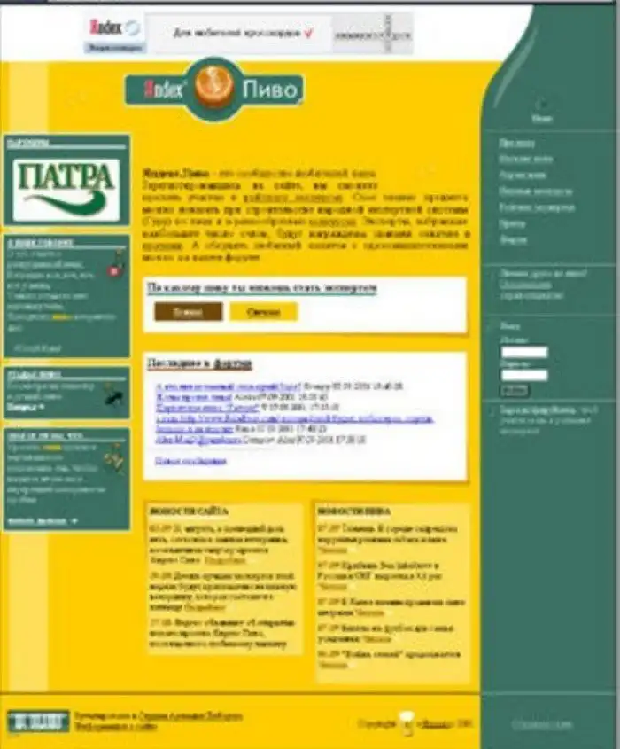 Сайт Яндекс.Пиво позиционировался в качестве любителей пива. Активные участники сервиса могли даже бесплатно выпить самого настоящего пива. Сервис позволял сравнивать разные сорта хмельного напитка.