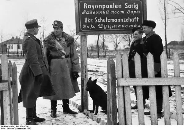 Вы можете себе представить украинских полицаев времён первой европейской оккупации Украины без их иностранных начальников в чёрных мундирах? Правильно. Это сделать невозможно, т.к. шуцманшафты (Schutzmannschaft или Schuma) были творением этих иностранных начальников в чёрных мундирах (Слава Украине – Гитлеру слава!).