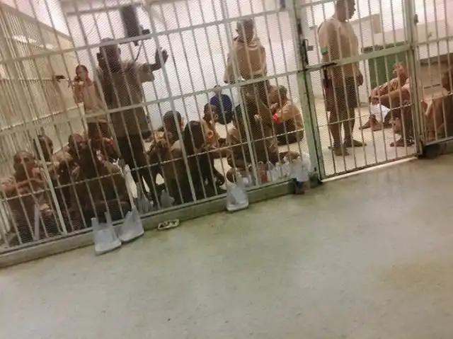 В участке нас раздели до трусов и бросили каждого в одиночную камеру. На следующий день перевезли в приемник-распределитель. Там в средних размеров комнате в полуподвальном помещении с нами находилось около 150 человек. Ноги вытянуть было нереально, сидели на корточках. Очень жарко и душно, но кормили нормально. В полицейском участке принесли какой-то фастфуд. В приемнике-распределителе давали кока-колу, гуарану, рис с курицей, гамбургеры.