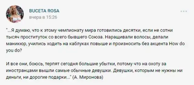СМИ уже не первую неделю поднимается тема о сексе россиянок с иностранцами, которые прибыли на Чемпионат мира по футболу 2018. Что самое интересное, тема получила широкое распространение после появления шуток и мемов в сети. Затем шутки переросли в глумление, а потом уже в намеренный поиск скандальных историй, которые бы прогремели на весь интернет.