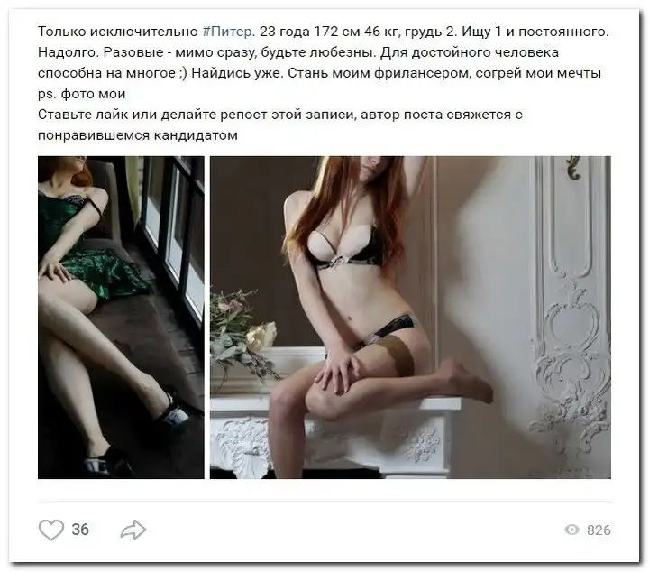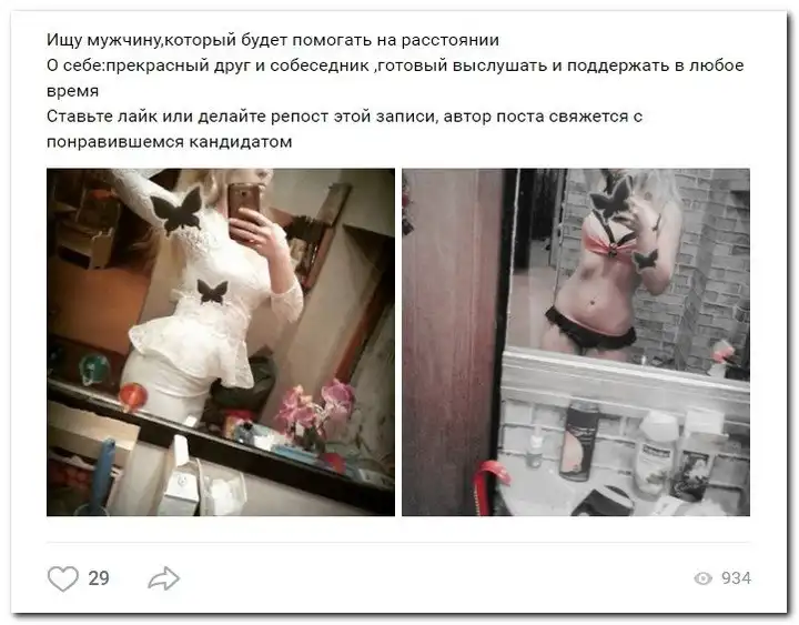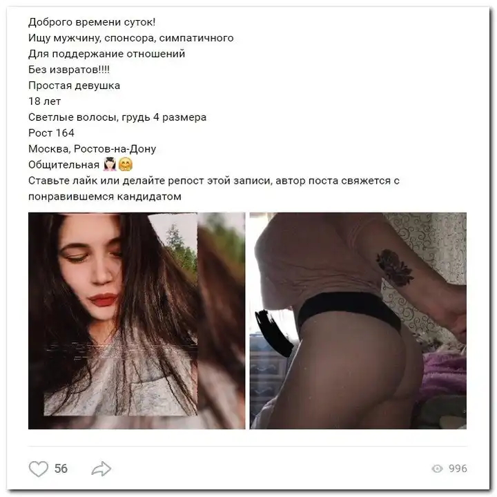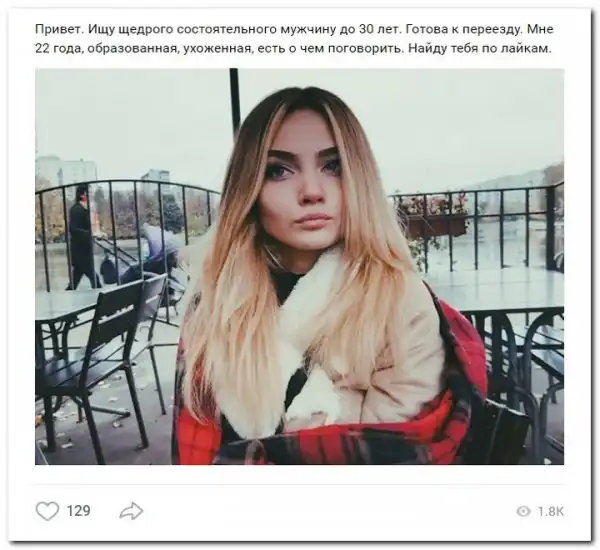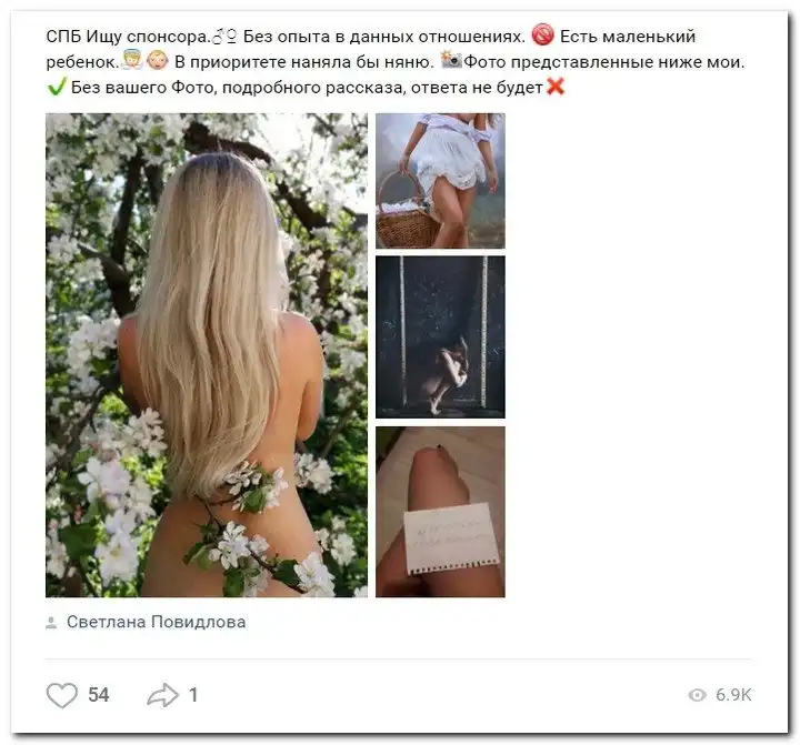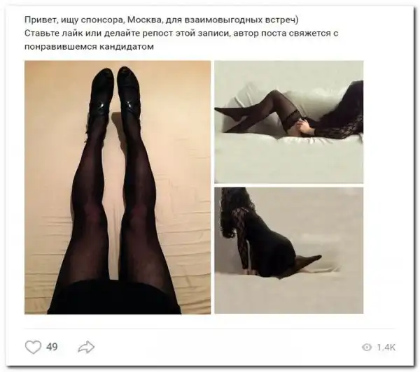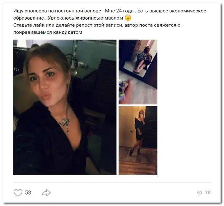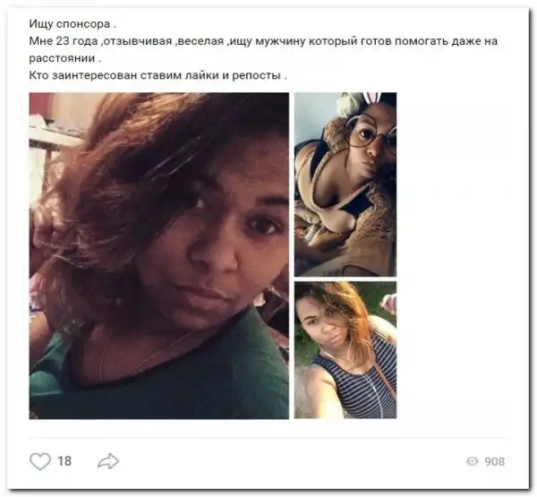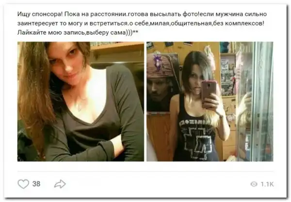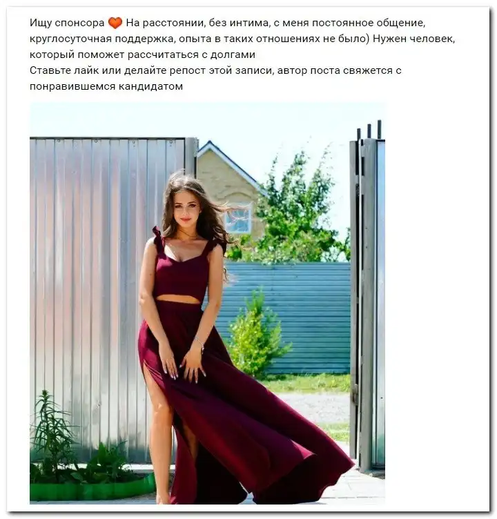 Эти наивные девушки хотят красиво жить и ничего не делать. Они надеются, что богатые спонсоры увидят их красоту, и в очередь выстроятся, предлагая свою помощь. Некоторые даже пишут, что никого интима, им должны заплатить чисто за приятное общение.