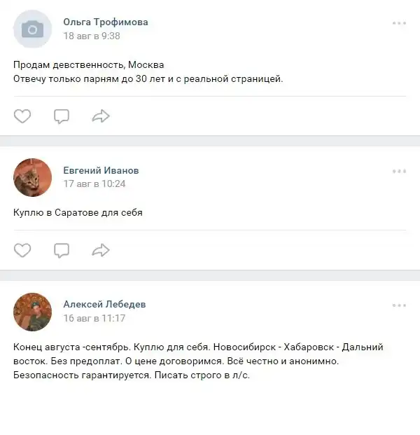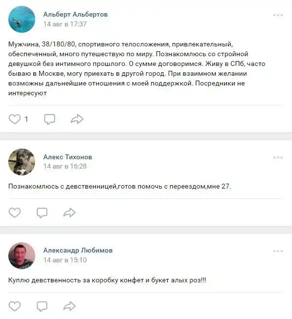 Соцсети сети просто кишат предложениями о купле/продаже девственности