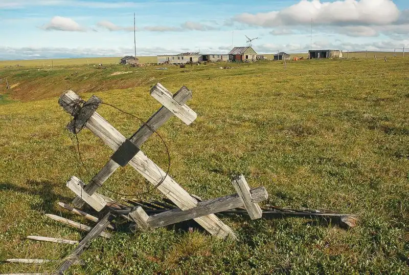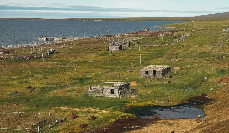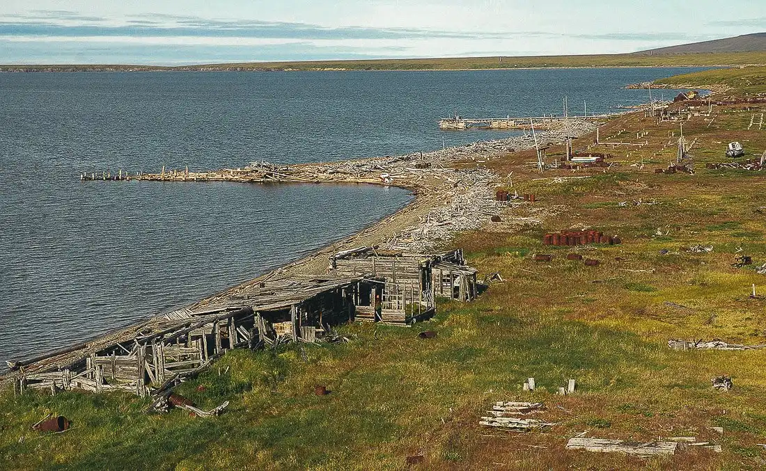 Когда-то в бухте Амбарчик действительно был крупный торговый порт (полярная станция была открыта почти одновременно с ним – в 1935 году), а в посёлке во время навигации жило несколько тысяч человек. Но это был не просто посёлок, а огромный лагерь, входящий в систему «Дальстроя» «архипелага ГУЛАГ». В Амбарчике, в частности, находился пересыльный лагерь политических и уголовных ссыльных, откуда они доставлялись в места постоянного заключения по бассейнам северных рек.