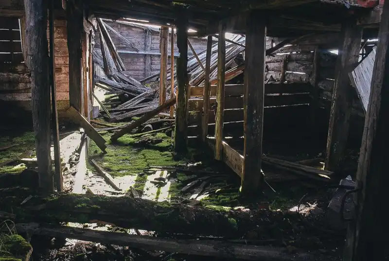 В то время в Амбарчике были построены пирсы, складские помещения, бараки, карцеры и т. п. Всё это было окружено километрами колючей проволоки. Она до сих пор встречается здесь везде. Кругом мрачные развалины, нагромождения каких-то железяк и камней, бочек и брёвен. Это место похоже, скорее, на свалку.