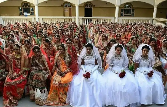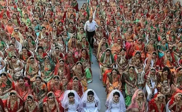 Индийский магнат, богатейший торговец алмазами Махеш Савани вот уже девятый год организует и, разумеется, спонсирует массовые свадебные церемонии для девушек, у которых нет отцов. Массовые свадьбы он проводит раз в год в городе Сурат на западе Индии. В этом году в массовой свадьбе участвовала 261 невеста, включая шестерых мусульманок и трех христианок.