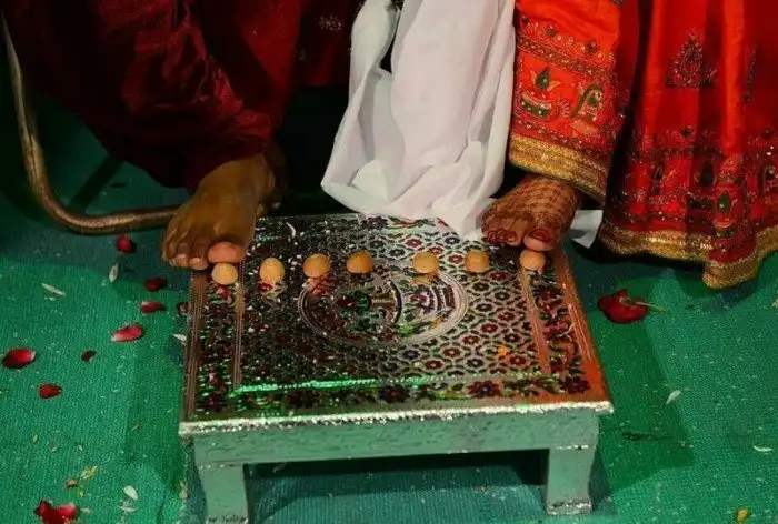 Все сложные ритуалы традиционной индийской свадьбы на массовом бракосочетании были тщательно соблюдены.