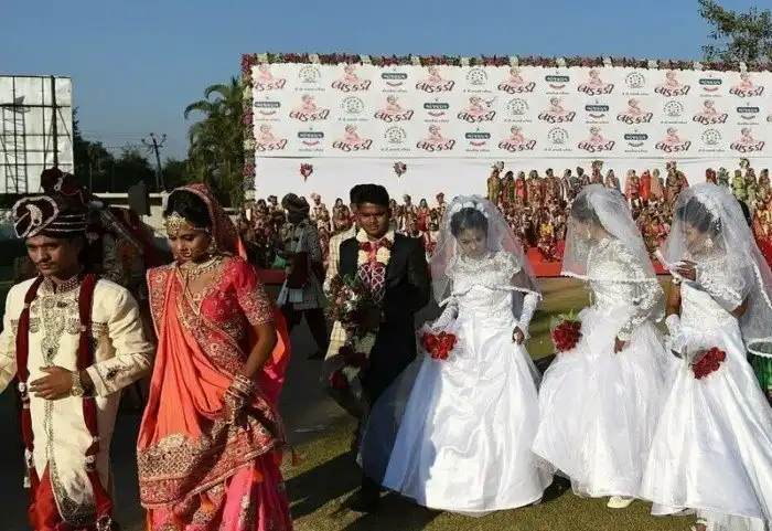 Сотни невест, не имеющих отцов, вышли замуж в ходе пышной церемонии, которую организовал и профинансировал алмазный магнат Махеш Савари, который за прошедшие девять лет выдал замуж более 3000 женщин. Савари считает, что выдать замуж невесту - это благословенная возможность, и ежегодно, начиная с 2010 года, устраивает массовые свадебные церемонии для сирот в городе Сурат на западе Индии. В церемонии этого года приняла участие 261 невеста, включая трех христианок и шестерых мусульманок. Вступающих в брак поприветствовал главный министр штата Гуджарат Виджай Рупани.