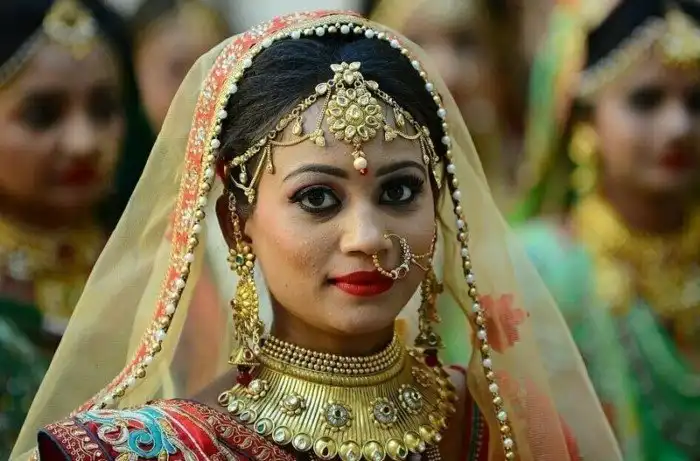 Невесты-христианки, как и мусульманки, также участвовали в церемонии, однако проходила она в соответствии с индийскими традициями.