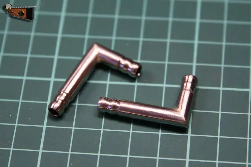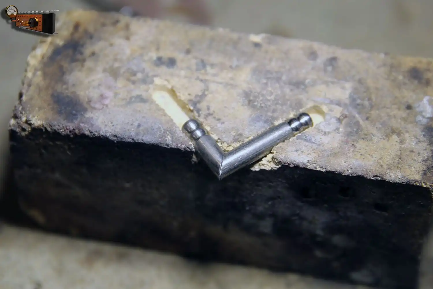 Трубки подключаются под прямым углом к плоскости насоса. Для этого делаю Г-образные трубки из нержавеющей стали. Для пайки под прямым углом в шамотном кирпиче профрезеровал два углубления.