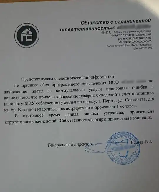 Управляющая компания в Перми допустила ошибку, благодаря которой в одной из квартир оказались "прописаны" 4 тысячи человек. Жилец этой квартиры получил квитанцию, в которой была указана квартплата в 2 миллиона рублей, что его крайне удивило.