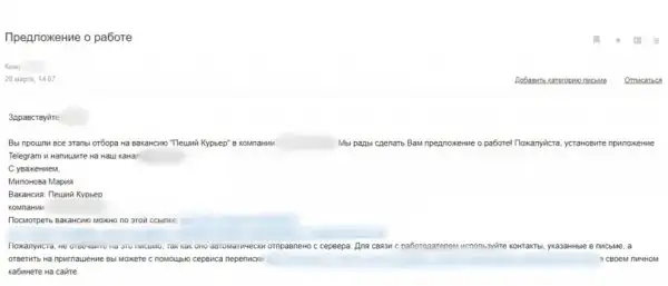 Автор этих скриншотов пишет, что недавно он хотел найти для себя подработку, поэтому обратил внимание на вакансию пешего курьера. Он связался с работодателем для выяснения всех деталей, и ему предложили действительно внушительные заработки. Хотите узнать подробности?