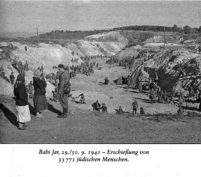 Когда в Киев пришли фашисты, было объявлено всему еврейскому населению явиться в назначенное место, всей семьёй, прихватив с собой все ценные вещи.