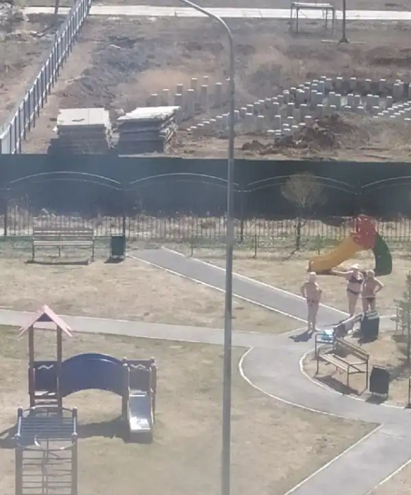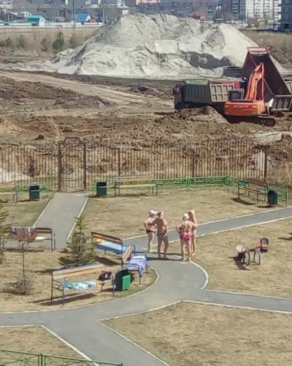 Пенсионеры в купальных костюмах просто вышли на одну из детских площадок в Тюмени и решили немного позагорать. Но это не очень обрадовало местных жителей, которые заявили, что целый день не могли выйти на площадку с детьми, чтобы у них не было психологической травмы. По словам жителей, пенсионеры никак не реагировали на замечания и не собирались одевались, пока солнце не начало уходить за горизонт.