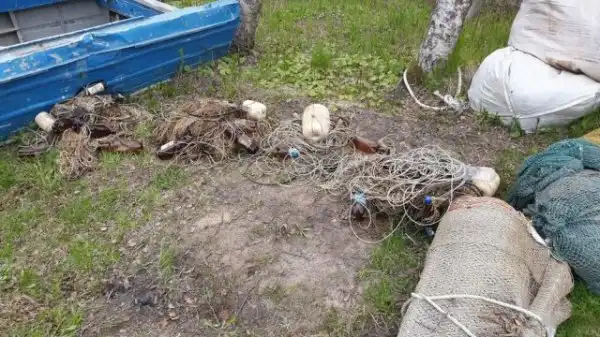 4) орудия незаконного промысла - 4 ставные сети типа "охан" (общей длиной 200 м, ячея - 200 мм);