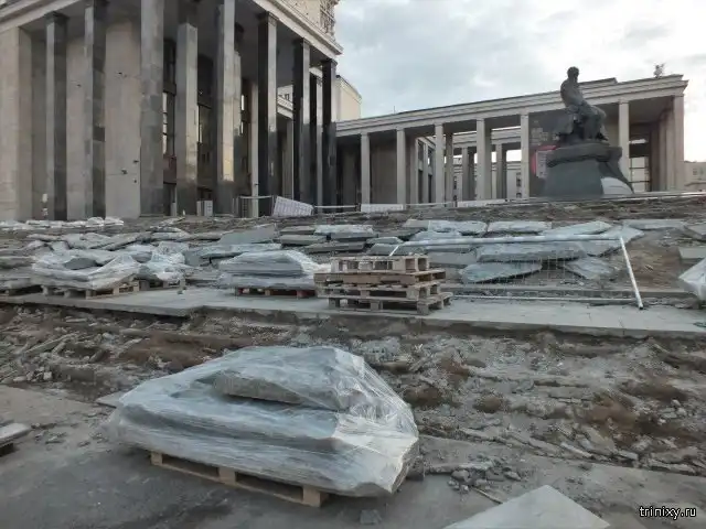Перед центральным входом в Российскую государственную библиотеку вновь начали перекладывать гранитную лестницу. С прошлого ремонта прошло всего 3 года, а на ремонтные работы тогда выделили более 3,4 миллиардов рублей. Сколько собираются потратить на этот раз, не сообщается.