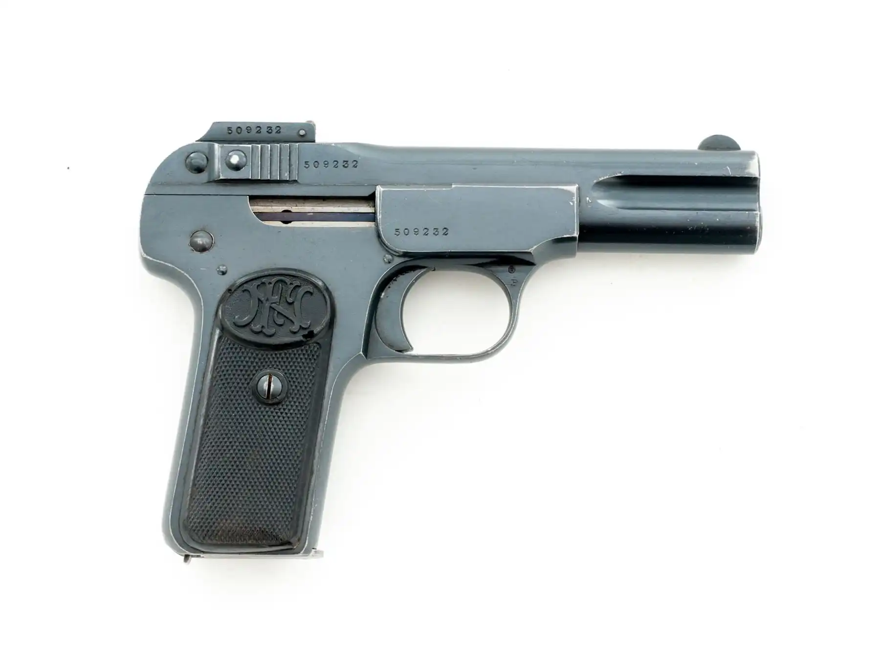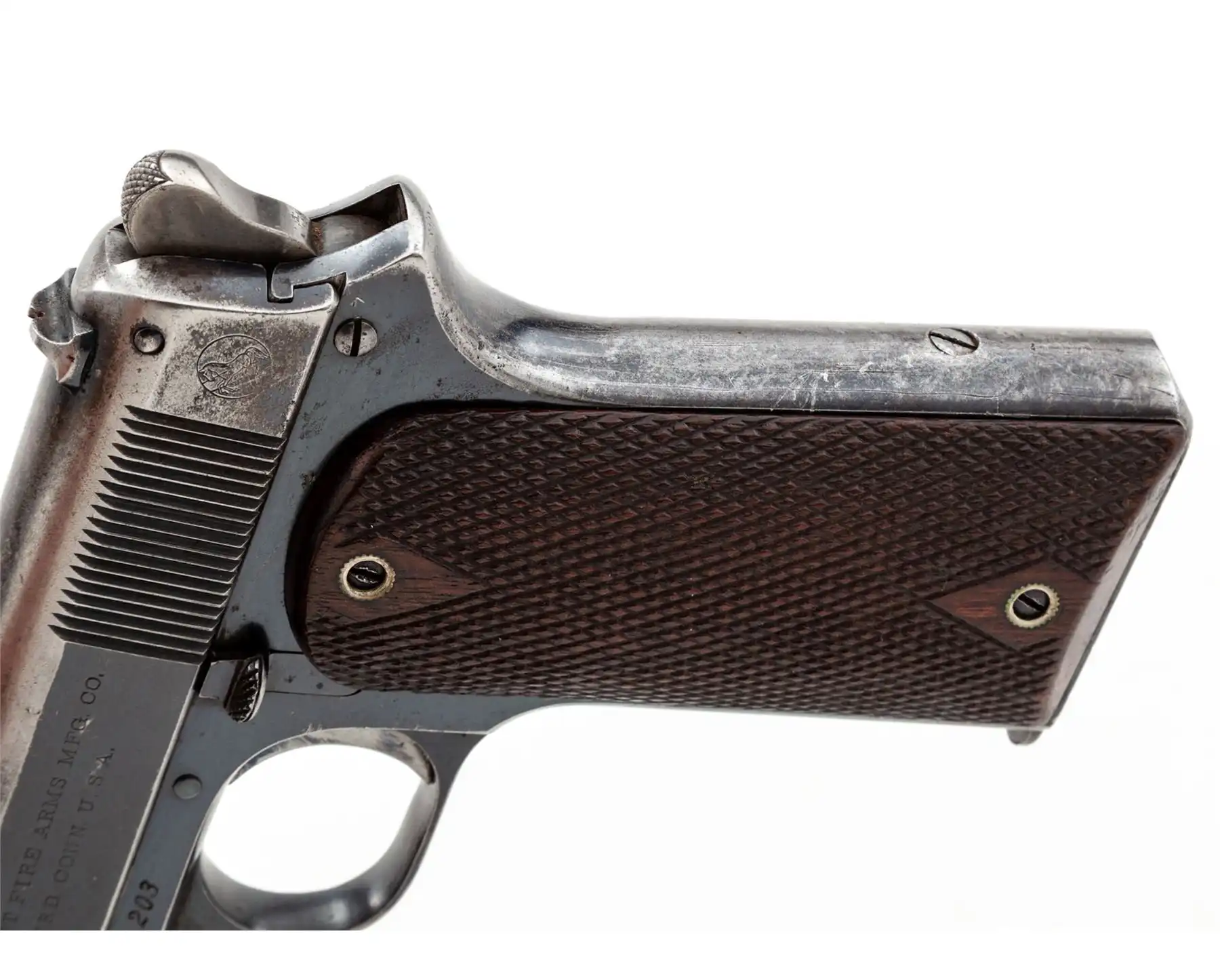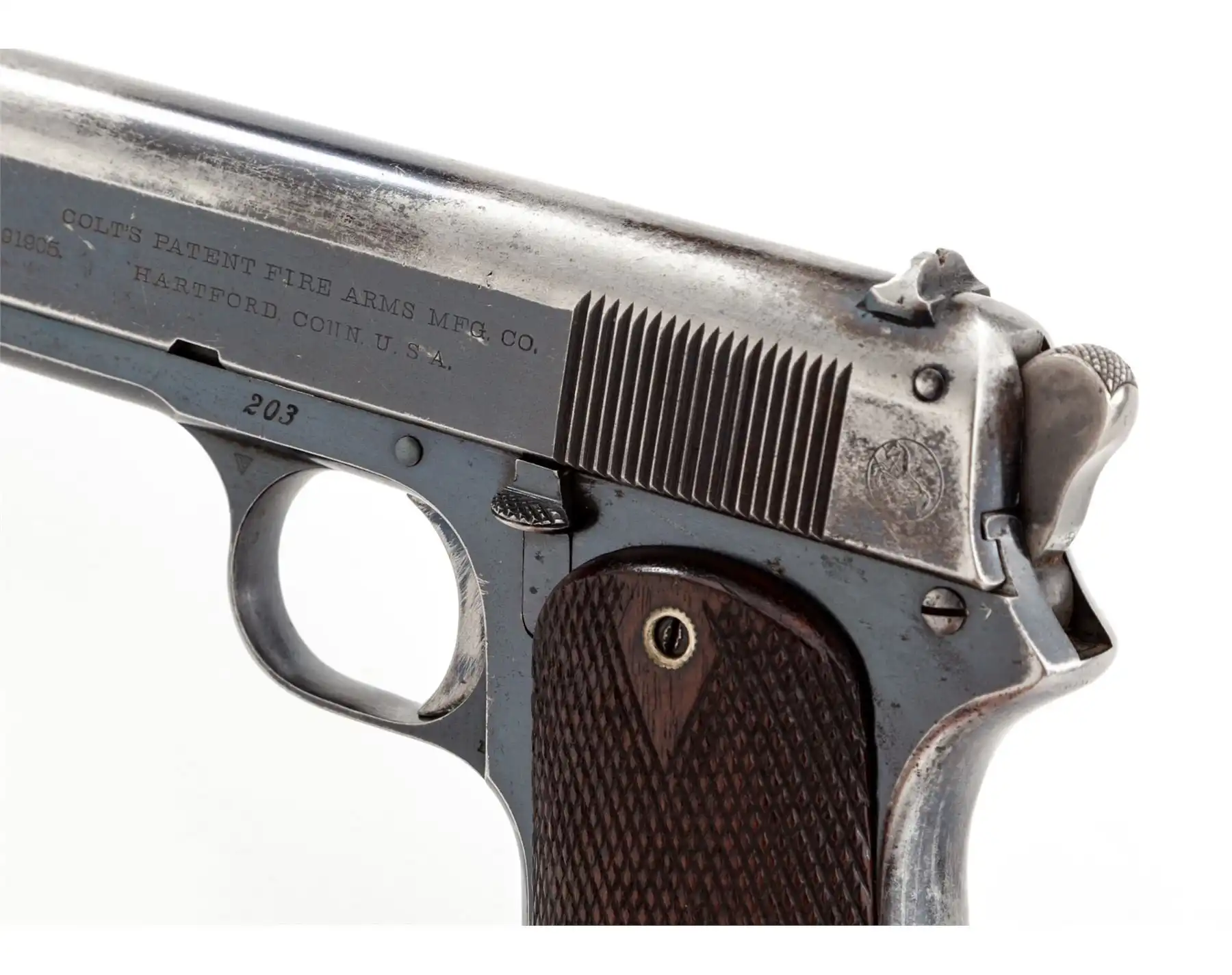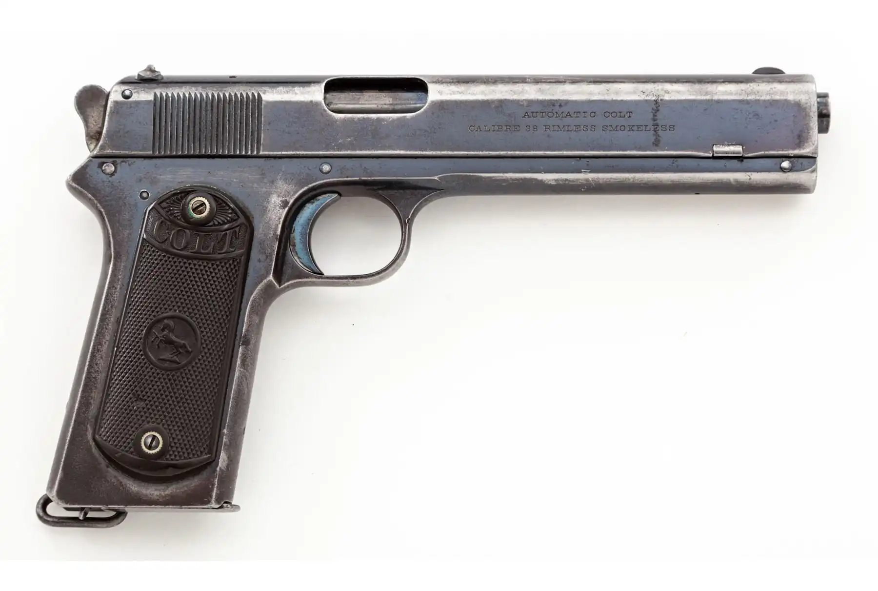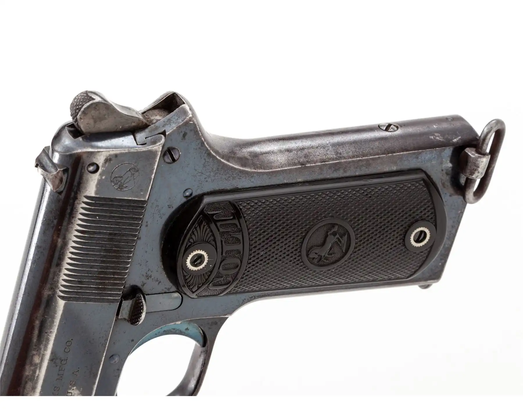 Один из первых шагов на пути к знаменитому 1911. Ствол ещё крепится к рамке двумя серьгами, а не одной, и опускается при расцеплении параллельно ей, но в целом принцип уже классический, короткий ход ствола. Калибр - .38ACP ( 9x23 ), длина ствола - 152мм ( 6" ).
