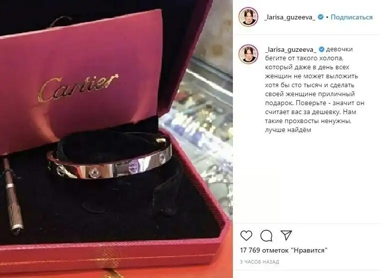 Впрочем, чему удивляться, если соведущая Сябитовой, Лариса Гузеева призвала девушек бросать парней которые подарят на 8-ое марта подарки стоимостью менее чем 100 тысяч рублей. На своей страничке в Инстаграм она заявила, что "такие прохвосты" солидным барышням не нужны. Правда, через некоторое время пост был удален, но интернет помнит все.