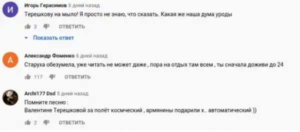 Почти неделя уже прошла с того момента, как первая женщина в космосе и депутат Государственной думы от «Единой России» Валентина Терешкова предложила обнулить президентские сроки Владимира Путина. Само собой, пользователи в социальных сетях без внимания такую идею не оставили, написав огромное количество «острых» и жестких комментариев. А что скажете вы?