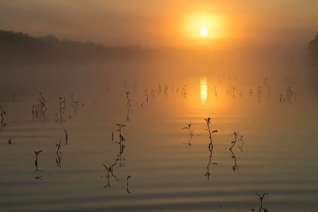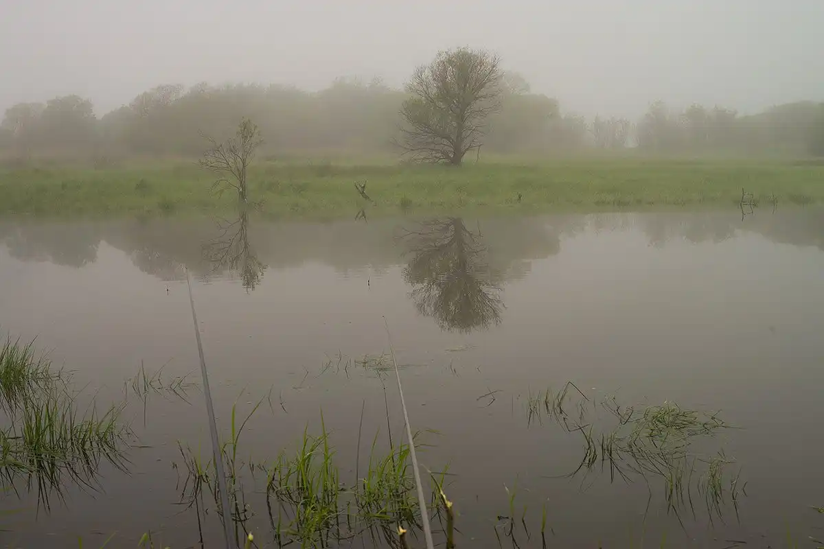 Птицы кричат на перебой. Сазаны в траве устроили свои брачные танцы.